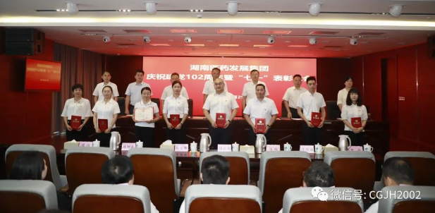 On the morning of June 29th, Hunan Pharmaceutical Development Group celebrated the 102nd anniversary of the founding of the Communist Party of China and held a "July 1st" commendation conference at the group headquarters. The conference commended the group's advanced grassroots party organizations (3), outstanding communist party members (15), and outstanding party workers (5). The company's party branch was awarded the title of "Advanced Grassroots Party Organization" by the group's party committee, and the director of the administrative center, Lai Yuejin, and the minister of the strategic development department, Cai Meifen, were awarded the title of "Outstanding Communist Party Member" by the group company.