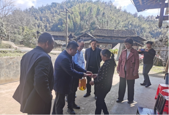 Subsequently, Shen Fan accompanied the team to visit and offer condolences to the elderly party members and poverty alleviation monitoring households in the village, delivering condolence money and daily necessities to help local impoverished households solve their living problems through practical actions。
