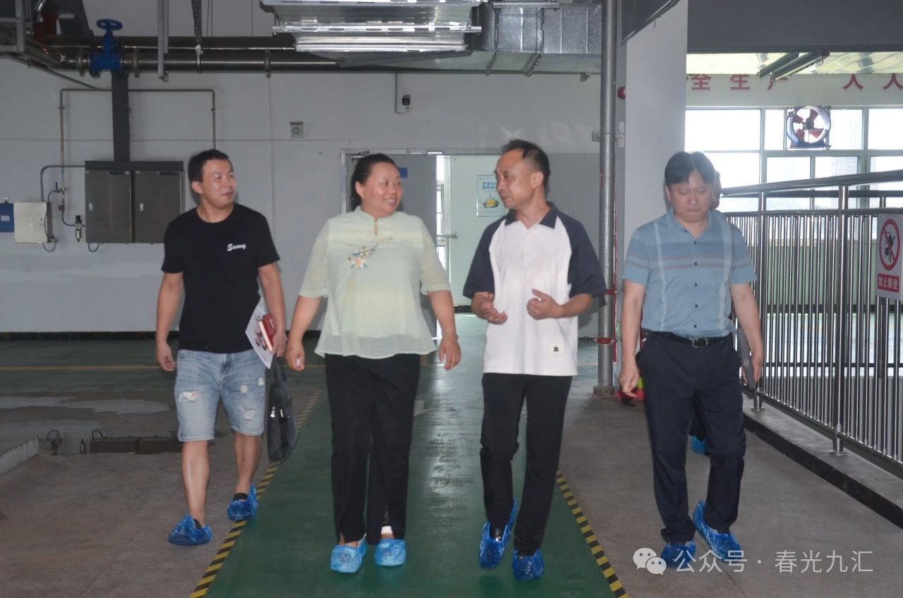 On September 2, Yu Cuiyun, Vice President and Party Committee Member of Hunan Academy of Chinese Medicine (hereinafter referred to as the Academy), led a delegation to inspect the company's Liuyang production base. Accompanying them were Kuang Jianjun, Director of the Academy's Research Work Department and Director of the Institute of Clinical Pharmacology of Chinese Medicine, and Dr. Ling Chengli. The company's Party Branch Secretary and Chairman Shen Fanshun, along with other leadership members and production managers, also participated in the inspection.