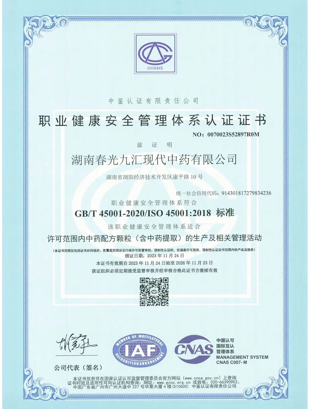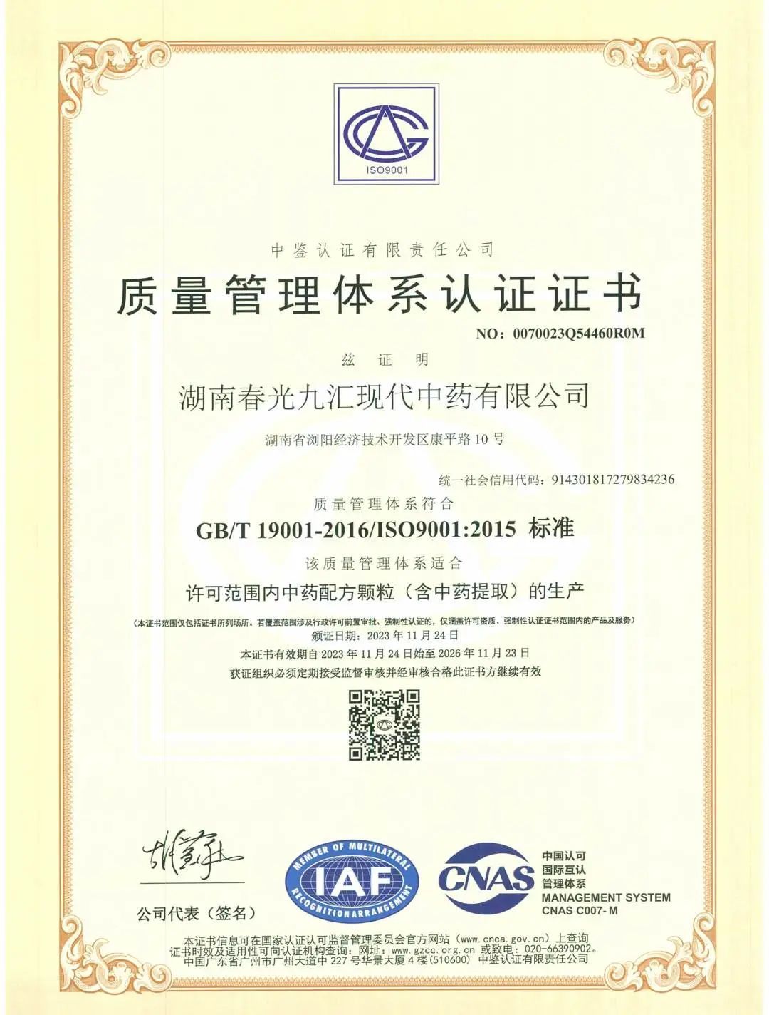 To further enhance its comprehensive management capabilities and establish a systematic, standardized, and regulated management framework, Chun Guang Jiu Hui decided in June this year to pursue the ISO 9001:2000 Quality Management System, ISO 14001:2001 Environmental Management System, and ISO 9001:2000 Occupational Health and Safety Management System certifications.