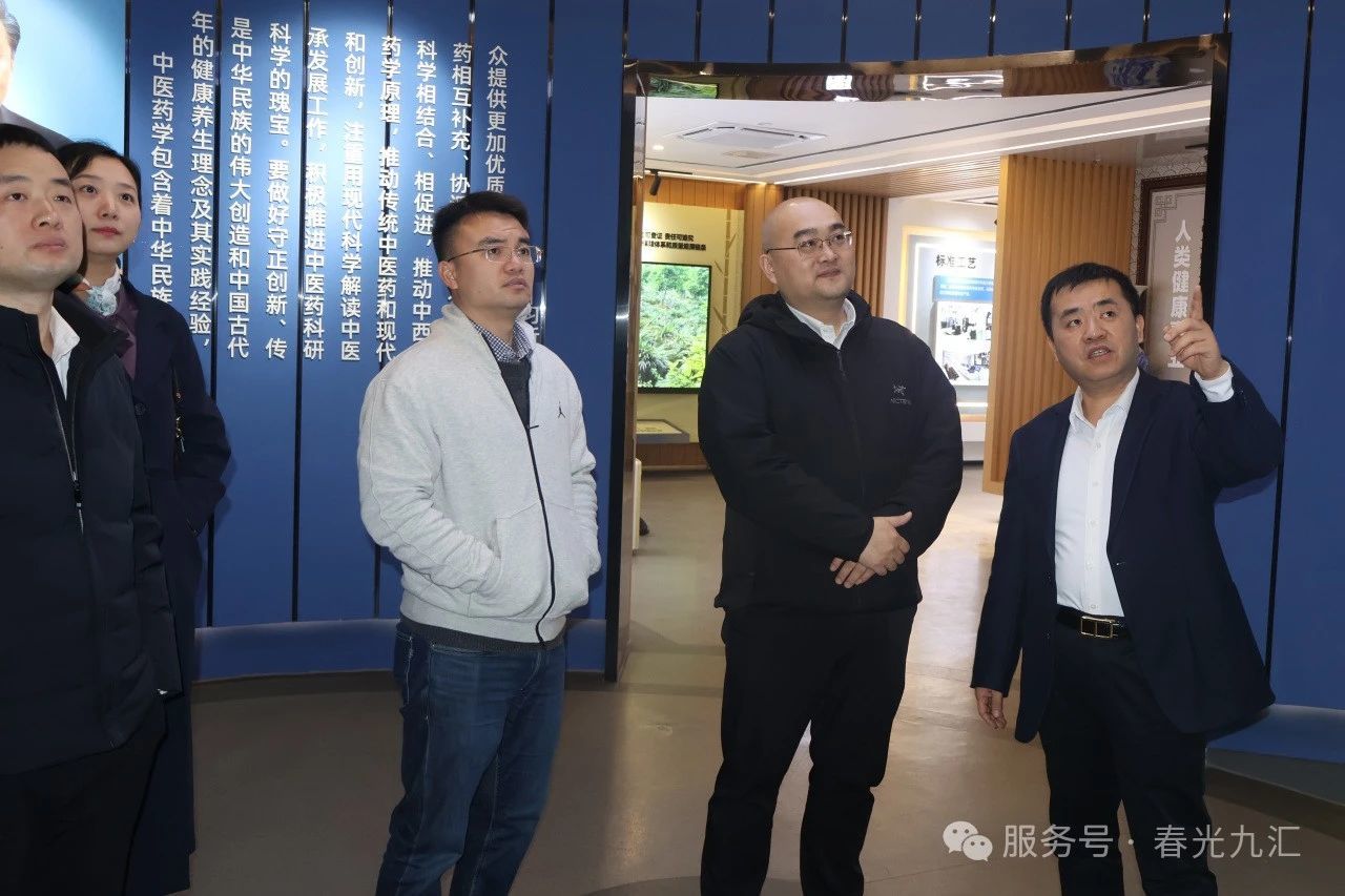 On March 13, Zhang Aoxiang, Chairman of Hunan Pharmaceutical Development Private Equity Fund Management Co., Ltd., led a delegation of mid-to-senior executives to visit the company for business cooperation and exchange. Attendees included Shen Fanshun, Party Branch Secretary and Chairman, Liu Yan, Deputy General Manager and Committee Member, along with heads of Source Company, Strategic Development Department, and Party-Mass Integration Department. During the tour, the delegation visited the company's exhibition hall, intelligent extraction workshop for Chinese herbal formula granules, storage facilities, quality management center, and drug research institute. They gained detailed insights into the company's development history, product portfolio, R&D innovation, and production quality control systems.