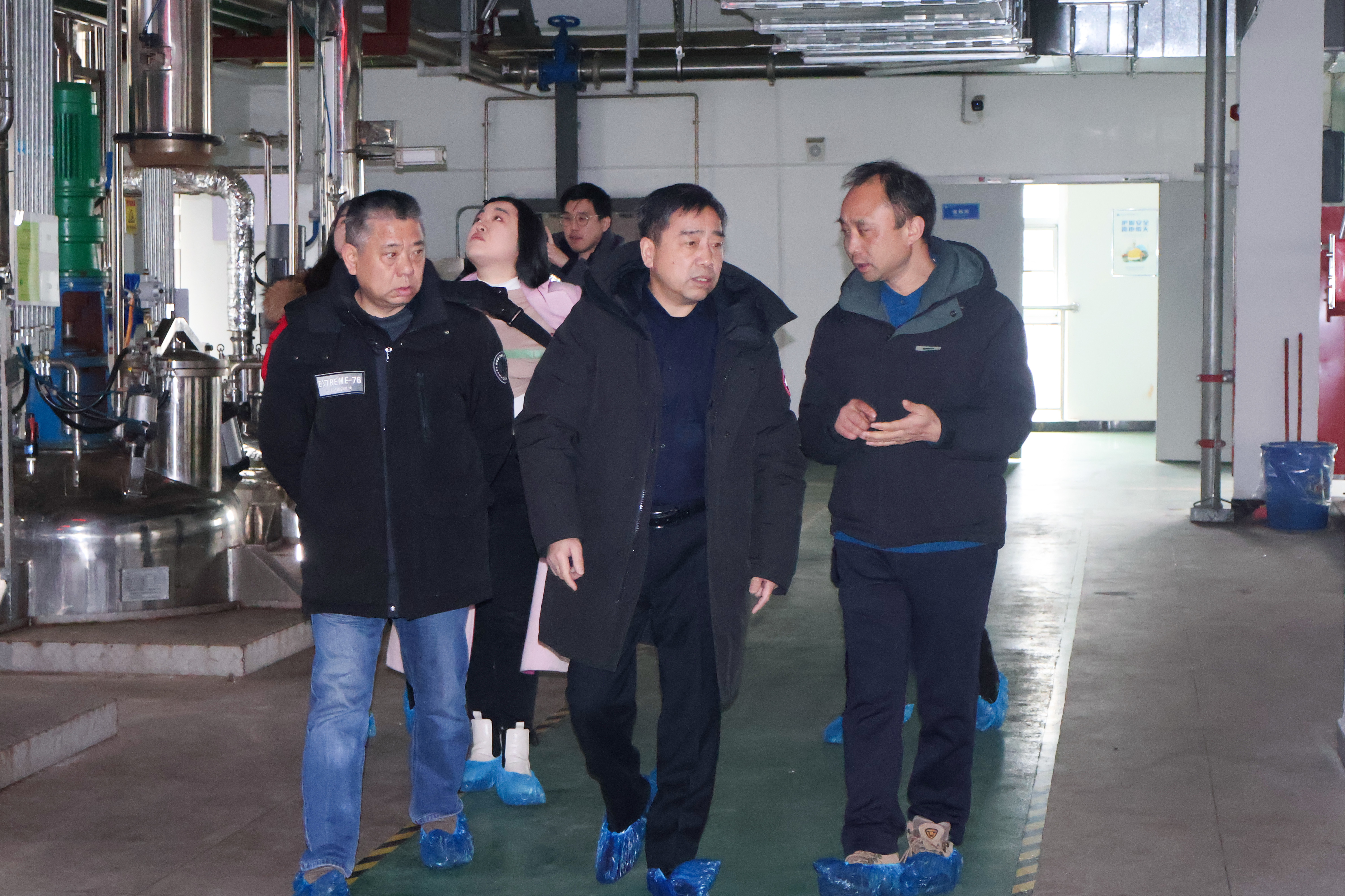 Accompanied by Chairman Shen Fanshun, Chairman Zhong Wenjun and his delegation first toured the corporate exhibition hall, where they gained a detailed understanding of Chenguang Jiuhui's development history and the technical advantages of its Chinese herbal formula granules and ultra-fine products. They then conducted an on-site inspection of the company's intelligent Chinese herbal extraction facilities, traceability management systems, ultra-fine herbal and food production workshops, as well as its R&D and quality testing centers. Through its comprehensive industrial chain layout and modern production system, the company demonstrates profound technical expertise and stringent quality control standards.